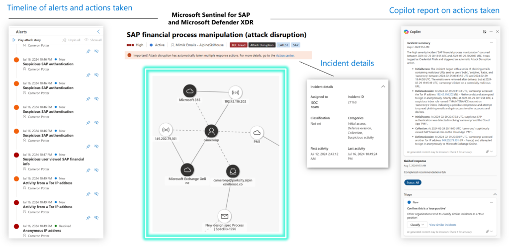 - AI-Powered Security Insights: The powerful Microsoft Sentinel Solution for SAP and Microsoft Security Copilot AI capabilities, combined with the security insights and threat intelligence from Onapsis, offer superior identification of sophisticated attacks affecting your SAP and broader environment.